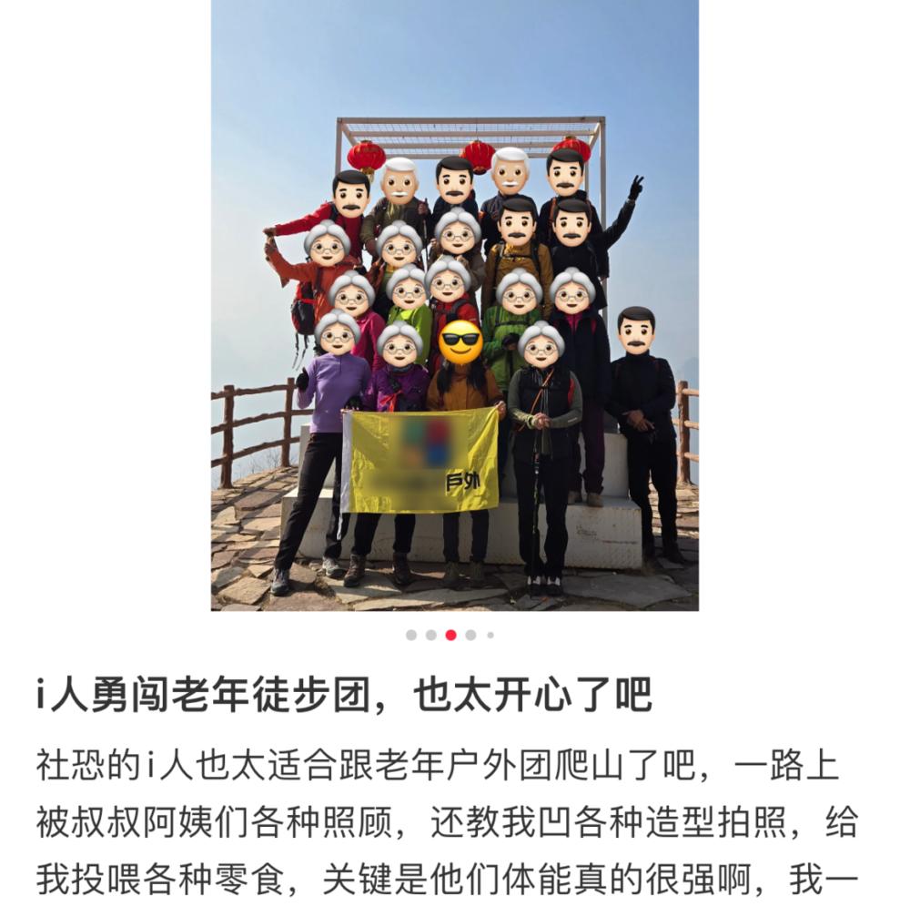 “这个年纪还能出来自驾和徒步的,都是经过了经济和身体方面双重筛选的精英人士”,在爷奶夕阳红的队列里,有见证98年的金融风暴的老股民,亦有某知名登山路线的开辟者,他们喊着“向快乐出发”,向“低精力人群”分享处世之道,答疑解惑,食物与精神的双重投喂之下,不亚于给体力与心灵来一场SPA。