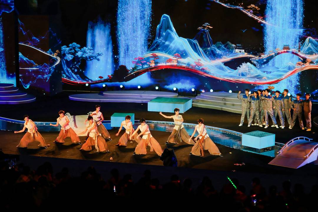 在音舞诗画《诗魂归蜀·古今共吟》中,舞者饰演的李白与机械臂操控的“数字李白”共舞,生动诠释了绵阳诗意与科技感交织的城市特质。当胡海泉唱响《奔跑》,在场观众仿佛都听到这座城市的脉动之声。